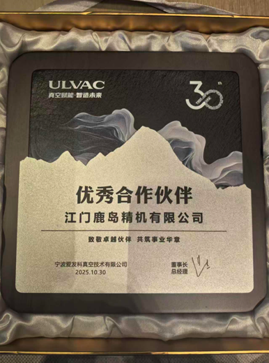 Awarded at ULVAC (NINGBO) CO., LTD.’s 30th anniversary ceremony